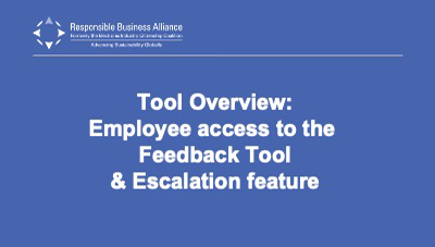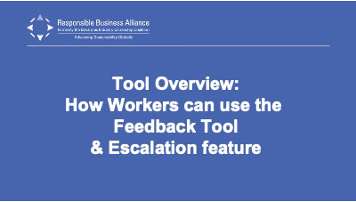 The RBA Voices’ FEEDBACK TOOL gives workers a mobile platform to share their concerns and provide factories with an operational feedback tool. To ensure a continuous positive experience, workers can escalate their grievances to 3rd party organizations for further oversight.
